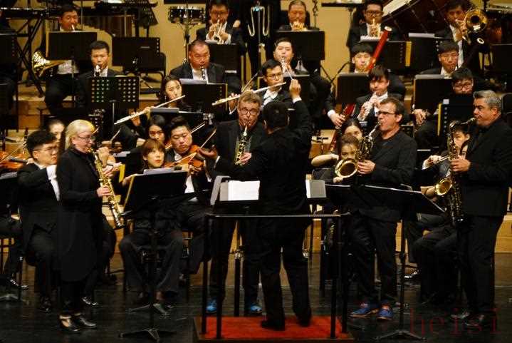 9月1日晚,杭州愛樂樂團與來自加拿大的薩克斯四重奏Quasar同臺合作,在釜山乙淑島藝術(shù)中心上演第二場音樂會。這個遠離市區(qū)喧囂的文化中心涵蓋了音樂廳、博物館、美術(shù)館等場所,太平洋的風從四周吹來,令人感到輕松自在。巧的是,當晚的音樂會也是以“風”(wind)為主題,但與自然的徐徐微風不同,楊洋執(zhí)棒杭州愛樂樂團奏響的“杭州之音”給乙淑島帶來的乃是一場酣暢淋漓的古典“風暴”。音樂會以一首絢爛輝煌的《坎迪德》序曲開始,杭州愛樂在開場的短短幾分鐘內(nèi)就顯示出驚人爆發(fā)力,用節(jié)奏和旋律的快速變化在現(xiàn)場營造出一個絢麗多彩的音樂世界。第二首曲目則是今晚的重頭戲:由喬治·格什溫的鋼琴協(xié)奏曲《藍色狂想曲》改編而成的薩克斯四重奏版《藍色狂想曲》,在這個遠離陸地的文化小島上迎來它的世界首演。