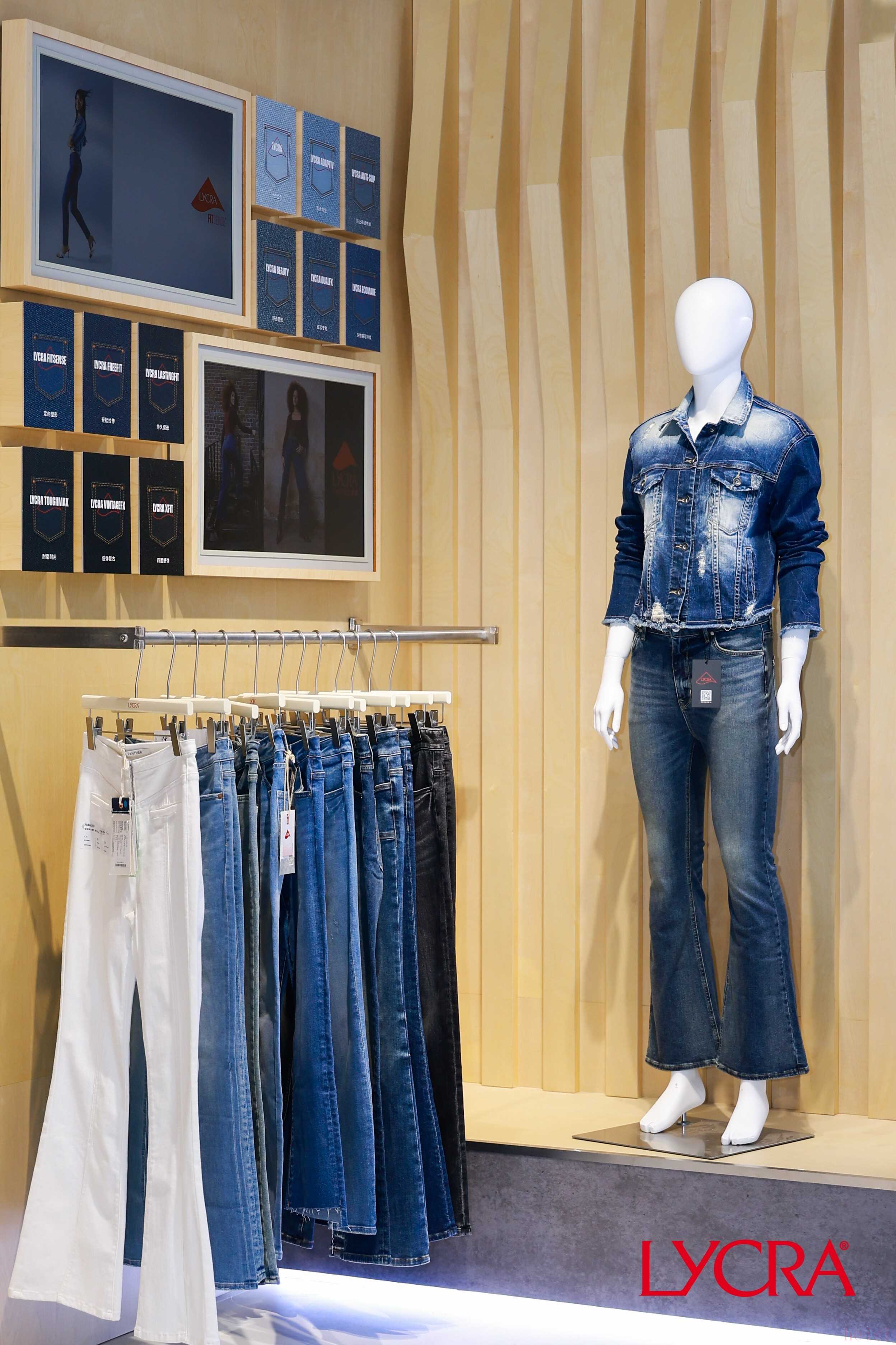 在2025年Intertextile秋冬面輔料展上,萊卡公司以“ALL IN 全力以赴”為主題亮相,首次打造開放式共創(chuàng)體驗空間,聯(lián)合18家合作伙伴集中呈現(xiàn)牛仔、運動及功能面料的最新研發(fā)成果。展區(qū)設(shè)計以沉浸式體驗突出品牌“共創(chuàng)”的理念,既展示了LYCRA? VintageFX復(fù)古牛仔、LYCRA? FitSense智塑牛仔等創(chuàng)新技術(shù),也上下游伙伴共同講述這些技術(shù)如何從纖維走向面料,再延伸至成衣與消費端的完整路徑。