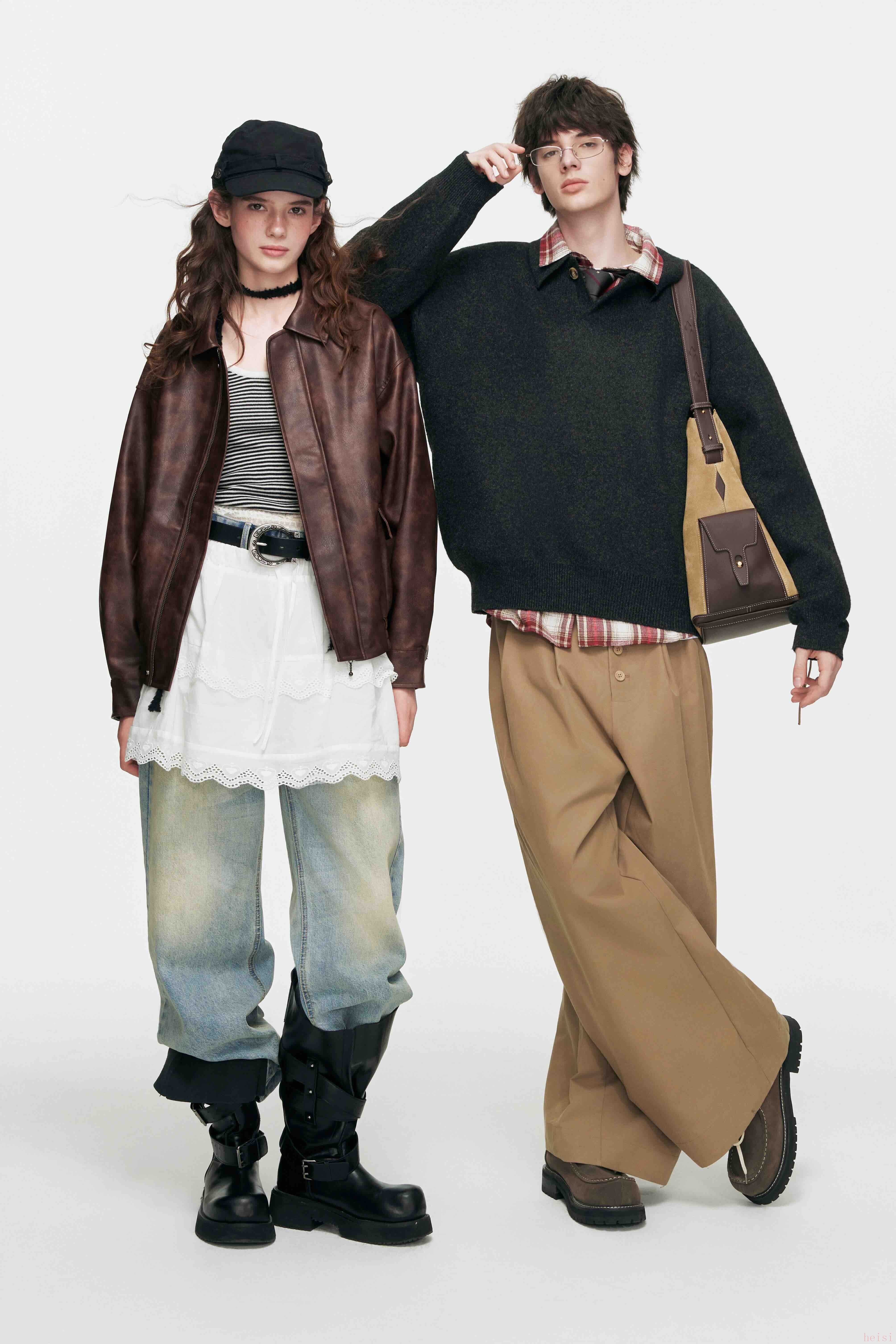 此次秋季系列以不同生活場景為靈感,分為“時髦休閑”和“都市通勤”兩大板塊,并延展出四個主題。在休閑場景中,“復(fù)古新序”將學(xué)院風(fēng)與90年代復(fù)古造型結(jié)合,以條紋、格紋與百褶裙展現(xiàn)青春叛逆;“柔美俱樂部”通過蕾絲拼接與針織單品,塑造甜酷并存的當(dāng)代女性形象;“鹽系戶外”則以輕盈錦綸和工裝元素,賦予戶外風(fēng)格更多時髦表達。通勤場景的“時髦尖子生”主題,則鼓勵新一代職場人打破常規(guī),將個性單品與通勤裝束自由混搭,展現(xiàn)不被定義的自我態(tài)度。