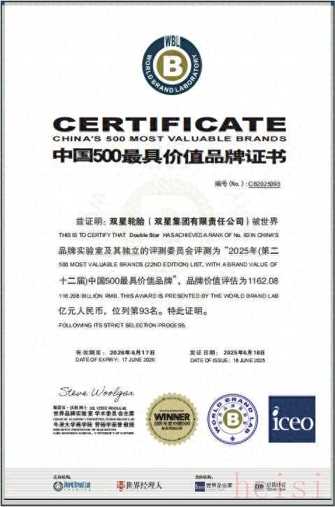 雙星輪胎作為中國(guó)輪胎行業(yè)的領(lǐng)軍企業(yè),其品牌價(jià)值高達(dá)1162億元人民幣,這一數(shù)字不僅彰顯了其在市場(chǎng)中的強(qiáng)大影響力,也反映了其卓越的產(chǎn)品質(zhì)量和持續(xù)創(chuàng)新的能力。