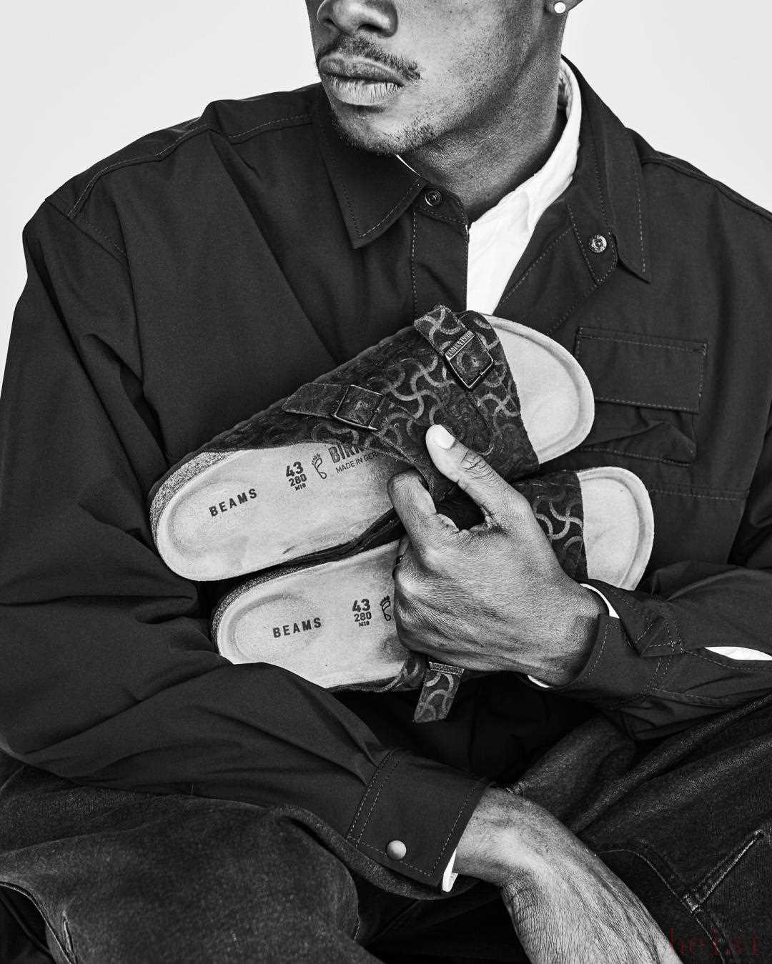 "Collaborators:" BEAMS (a Japanese select shop known for its curated fashion and collaborations) and Birkenstock (the iconic German brand famous for its cork sandals and shoes).