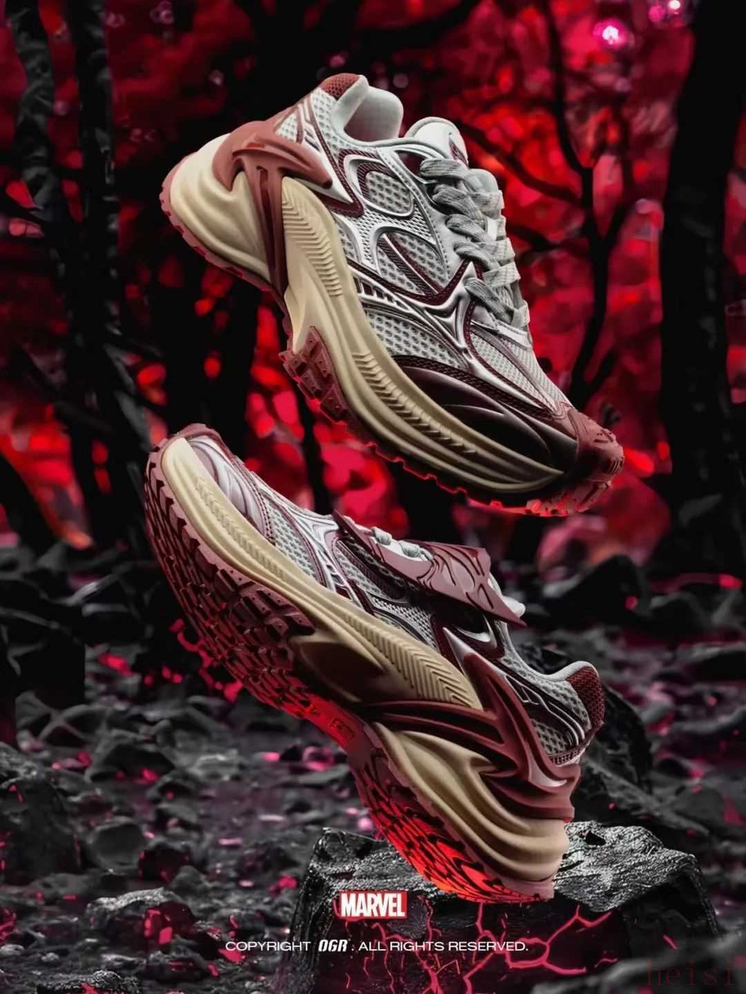 同時擁有英雄本色和硬核精神的 OGR 與漫威在2025年初夏迎來了首次合作,重磅推出無限進化鋼鐵俠的「馬克五號」洞洞鞋和緋紅女巫的「響尾蛇AD」機甲鞋,于經(jīng)典鞋款注入超級英雄的極致力量元素,深度融合 OGR 機能美學(xué),聯(lián)袂打造獨屬新時代潮流的硬核全宇宙。