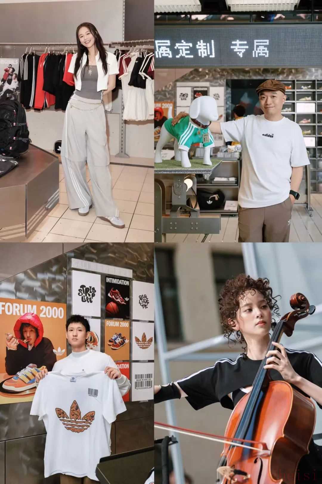 開業(yè)首日,剪彩儀式后,蕭家樂先生與馬思純女士為傳統(tǒng)舞獅進行點睛儀式,寓意新店 “慧眼識潮、生意興隆”。阿迪達斯品牌代言人馬思純親臨「MADE FOR YOU」專屬定制空間,精心挑選個性化配件,打造帶有她個人風(fēng)格印記的三葉草經(jīng)典鞋款。三葉草特別嘉賓歐陽娜娜驚喜亮相,與鋼琴家江天霖帶來大提琴與鋼琴的精彩表演。阿迪達斯品牌代言人 GALI 也于開業(yè)當日親臨現(xiàn)場,體驗店內(nèi)「MADE FOR YOU」定制區(qū)域,為三葉草單品融入他原創(chuàng)的個性化涂鴉元素。此次開業(yè)典禮也榮幸到導(dǎo)演程亮蒞臨現(xiàn)場,以敘事電影的藝術(shù)視角解讀城市記憶。adidas Originals 首次推出的寵物服飾與配件系列也在安福路新店獨家率先亮相。