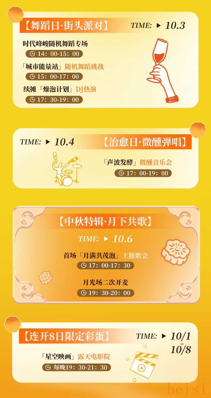 準(zhǔn)備好迎接一場(chǎng)感官盛宴了嗎?精彩紛呈的中秋主題活動(dòng)、令人腎上腺素飆升的互動(dòng)游戲、熱鬧非凡的現(xiàn)場(chǎng)表演……我們?yōu)槟鷾?zhǔn)備了無限歡樂,讓您盡情釋放壓力,嗨翻整個(gè)中秋!