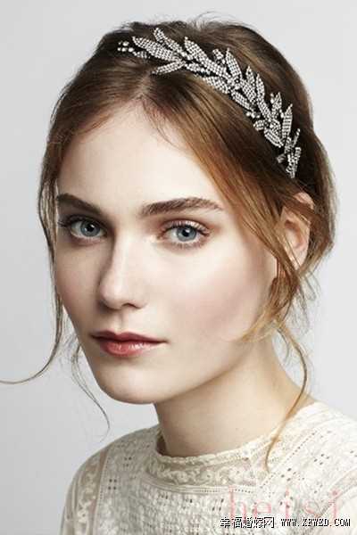 Jennifer BehrJennifer Behr創(chuàng)作出的頭飾發(fā)帶充滿著誘惑力,每一款都充滿獨特魅力,令人大愛的細節(jié)。Jennifer Behr的頭飾設(shè)計,也絕不僅僅停留于Gossip Girl “布萊爾·沃朵夫”式的甜美。新娘佩戴上這款華麗的施華洛世奇水晶樹葉發(fā)箍,拋棄頭紗,也能是最完美的新娘。
