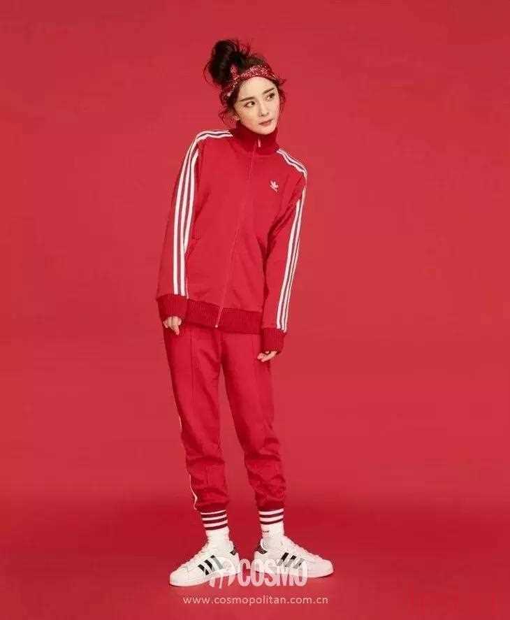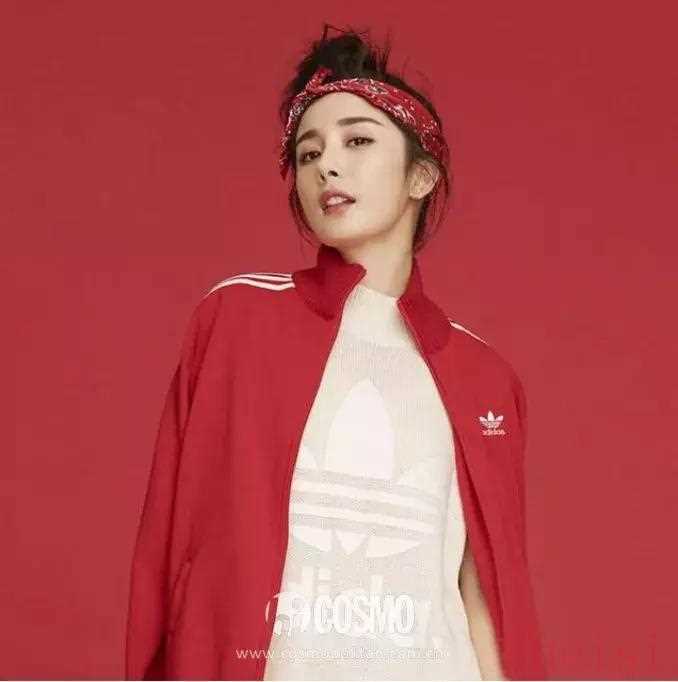楊冪選擇在高高的丸子頭上綁一條紅色印花方巾發(fā)帶,不僅增加了亮點(diǎn),還將臉部輪廓突出得更加立體。