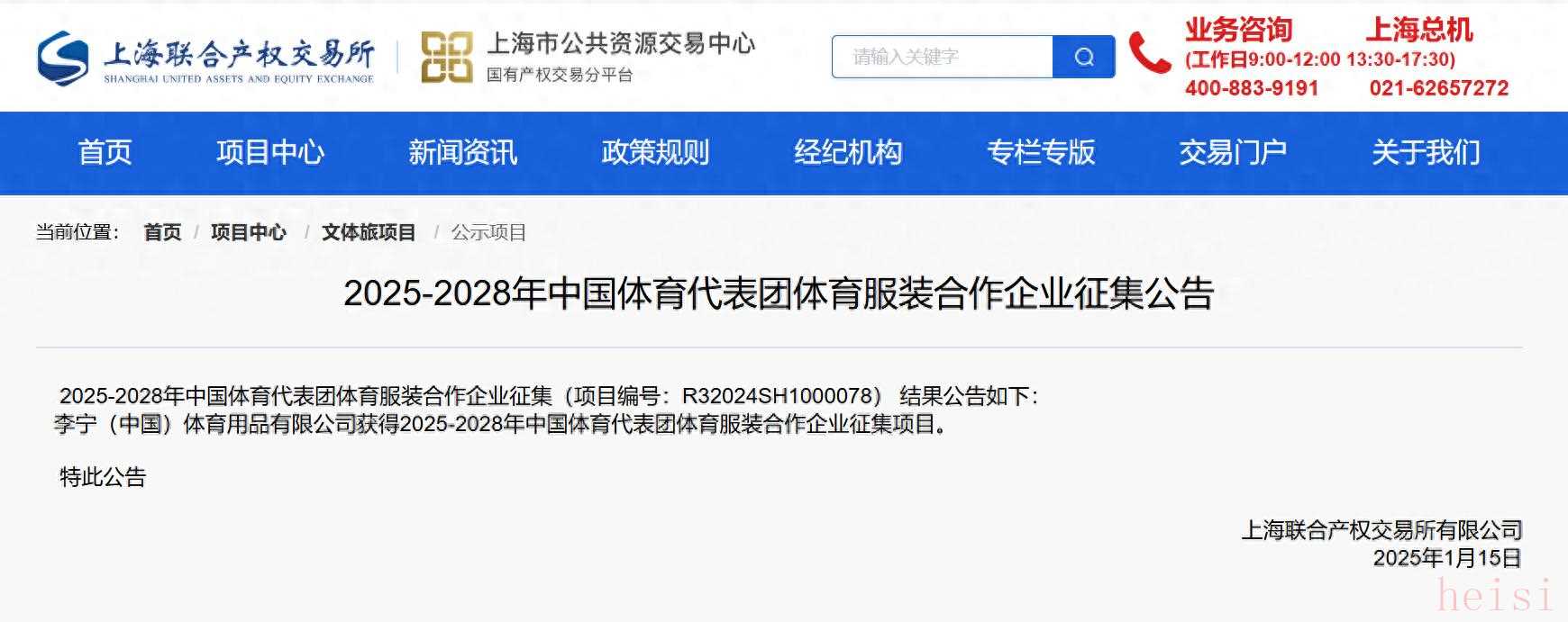 北京時(shí)間2025年1月15日,上海聯(lián)合產(chǎn)權(quán)交易所正式發(fā)布公告宣布,國(guó)產(chǎn)體育用品公司李寧公司獲得2025-2028年中國(guó)體育代表團(tuán)體育服裝合作企業(yè)征集項(xiàng)目,這標(biāo)志著李寧品牌將在2025-2028年期間以官方體育服裝合作伙伴的身份服務(wù)中國(guó)奧委會(huì)(COC)及中國(guó)體育代表團(tuán)。