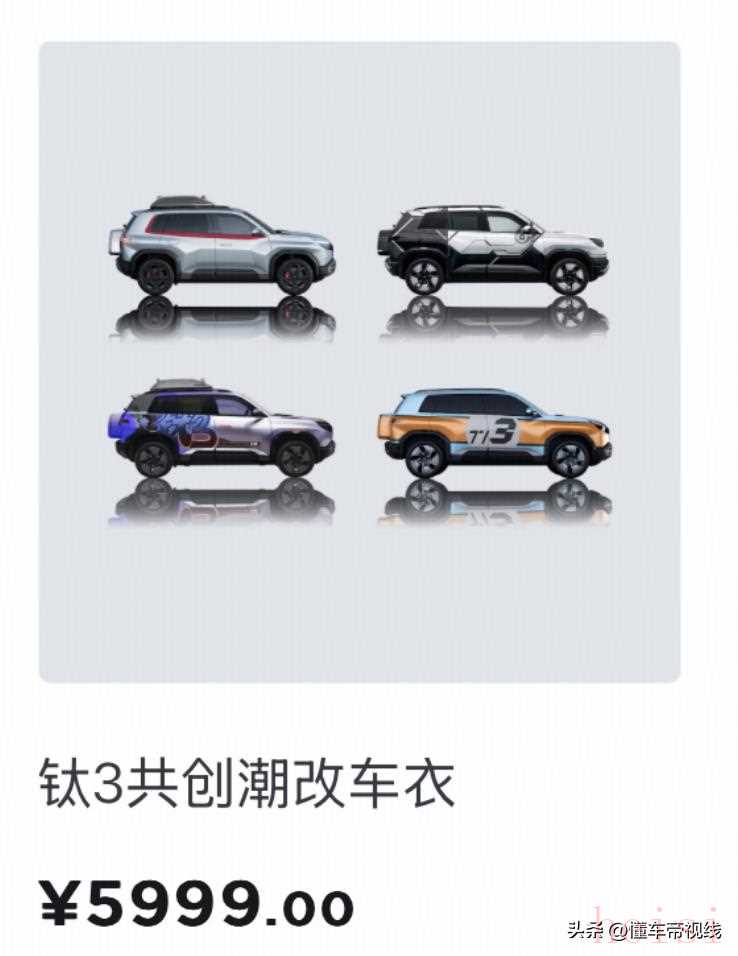 3. "售價(jià)預(yù)估:" 這套“新車(chē)衣”的選配或購(gòu)買(mǎi)價(jià)格預(yù)計(jì)為 "5999元"。這個(gè)價(jià)格相對(duì)較高,可能包含了設(shè)計(jì)、材料和安裝的附加值