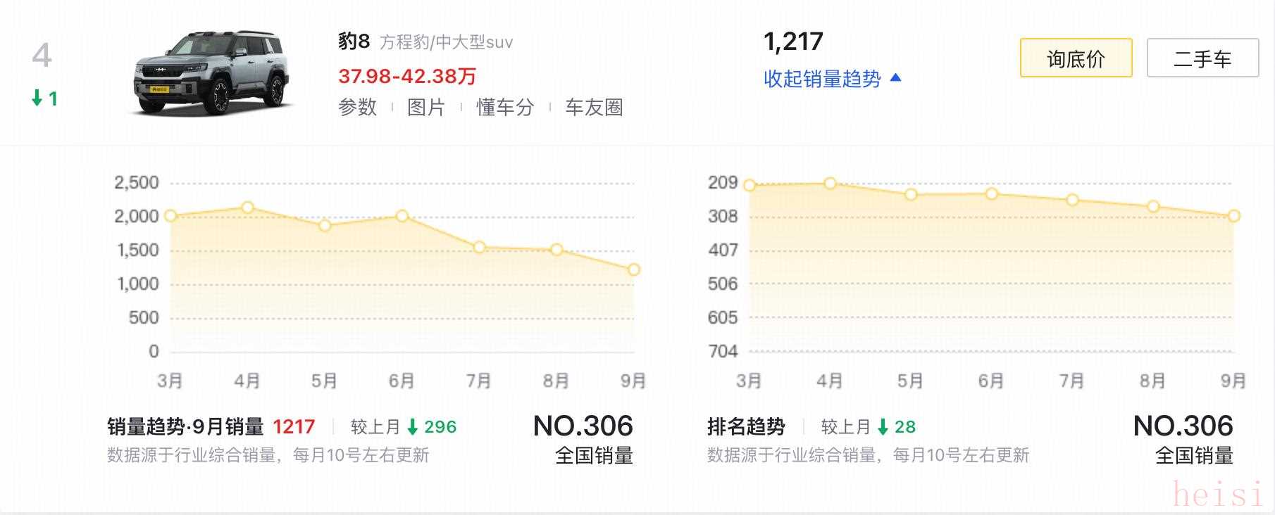 方程豹豹8 9月銷量