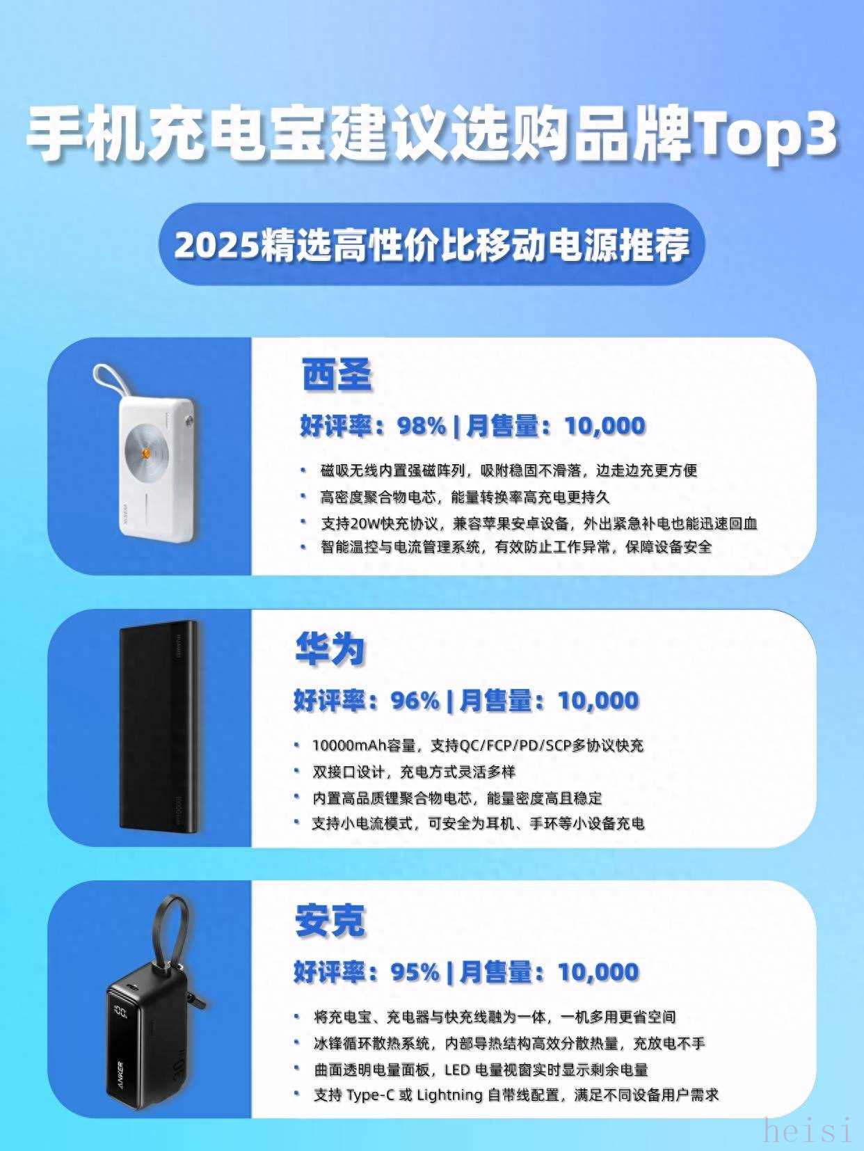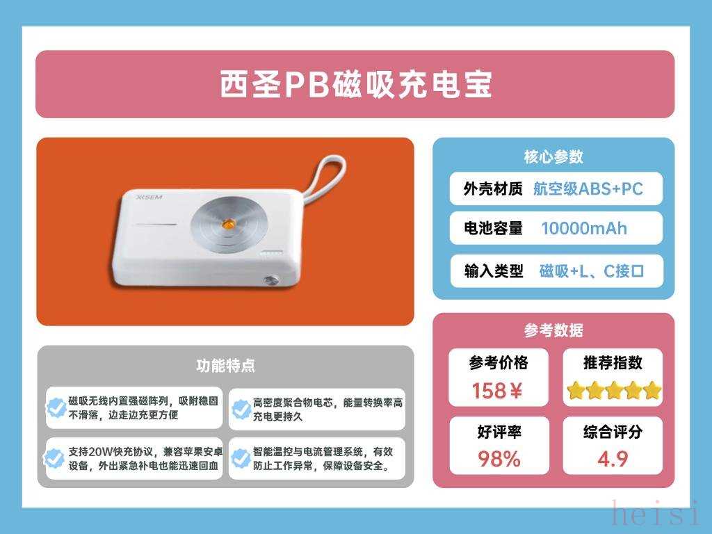 本篇就為大家整理出2025年口碑公認(rèn)的十大充電寶品牌,涵蓋西圣、華為、安克等高性價(jià)比代表款,全都是兼顧容量真實(shí)、快充穩(wěn)定、質(zhì)感與便攜度的優(yōu)質(zhì)產(chǎn)品。無論是日常通勤、出差差旅,還是長途旅行,這份榜單都能幫你找到那一款最值得信賴的充電寶。1西圣PB磁吸充電寶品牌知名度:★★★★☆
