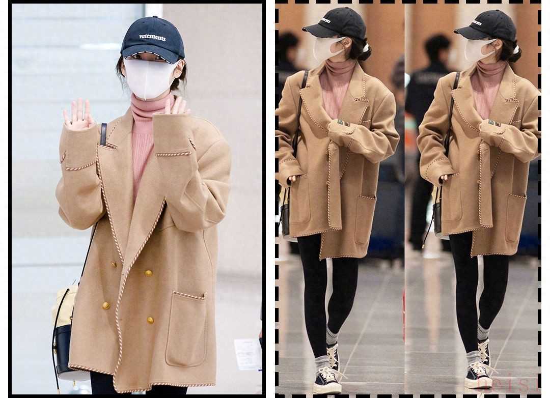 這不,昨天刷到了IU的私服穿搭,她那嬌小的身形卻裹了件寬大版型的卡其色西裝外套(男裝牌子:GUCCI),搭配了一件藕粉色的高領(lǐng)針織衫(牌子:GUCCI),就有種偷穿了爸爸外套的感覺(jué)。