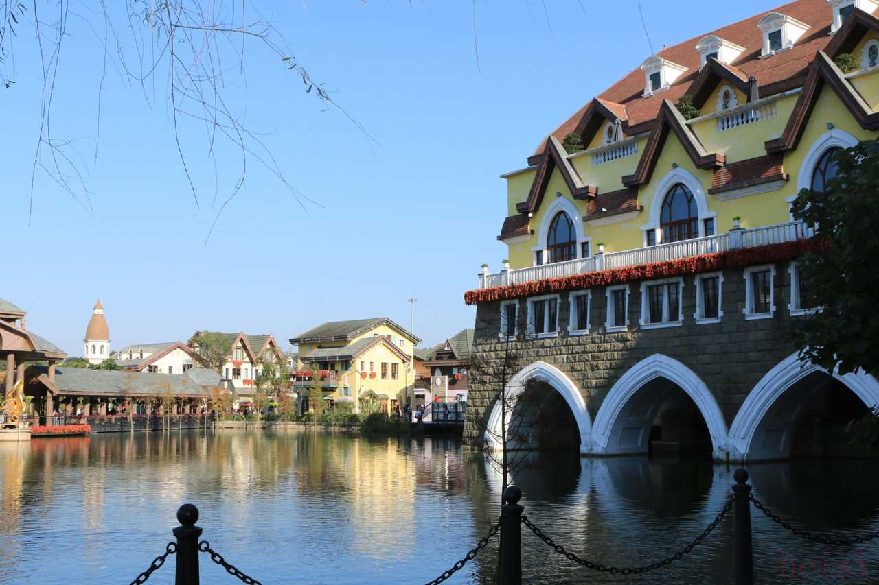 小鎮(zhèn)環(huán)湖而建,擁有精致的廊橋、熱鬧的咕咕鐘舞臺和歐式酒店群。以前進(jìn)入這里需要購買東部華僑城門票,但2021年后,可免費進(jìn)入了。