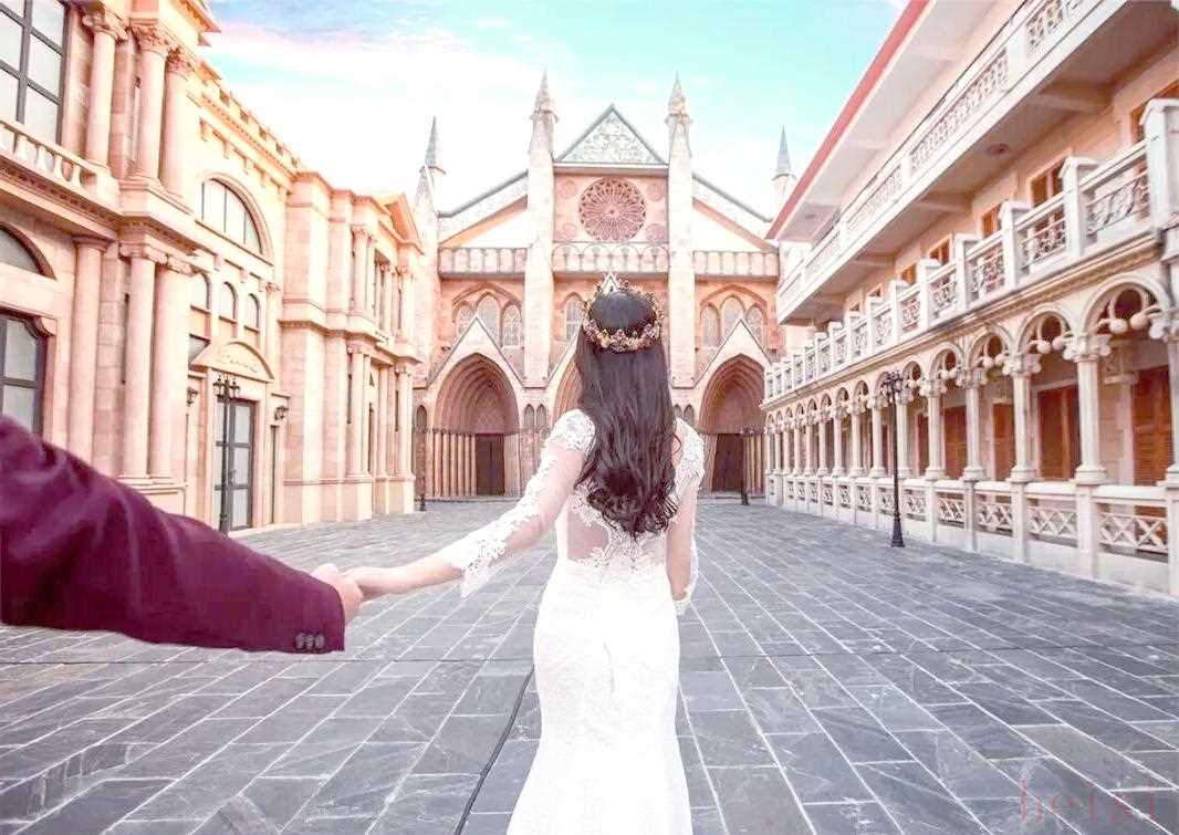 街區(qū)主打婚紗攝影,許多情侶身著婚紗禮服,手牽手地依偎在教堂門前,臉上洋溢著幸福的笑容,仿佛置身于浪漫的歐洲童話之中。