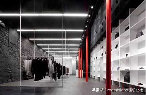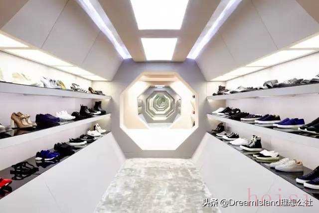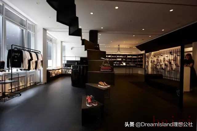 地下一層則是另一種風(fēng)格,更加跳脫,特別。存放的款式也更加偏時(shí)裝類,讓整體的風(fēng)格更為突出了,強(qiáng)調(diào)了空間環(huán)境和時(shí)裝之間的關(guān)系。這也是現(xiàn)在大多數(shù)實(shí)體店在尋求轉(zhuǎn)型的方向。