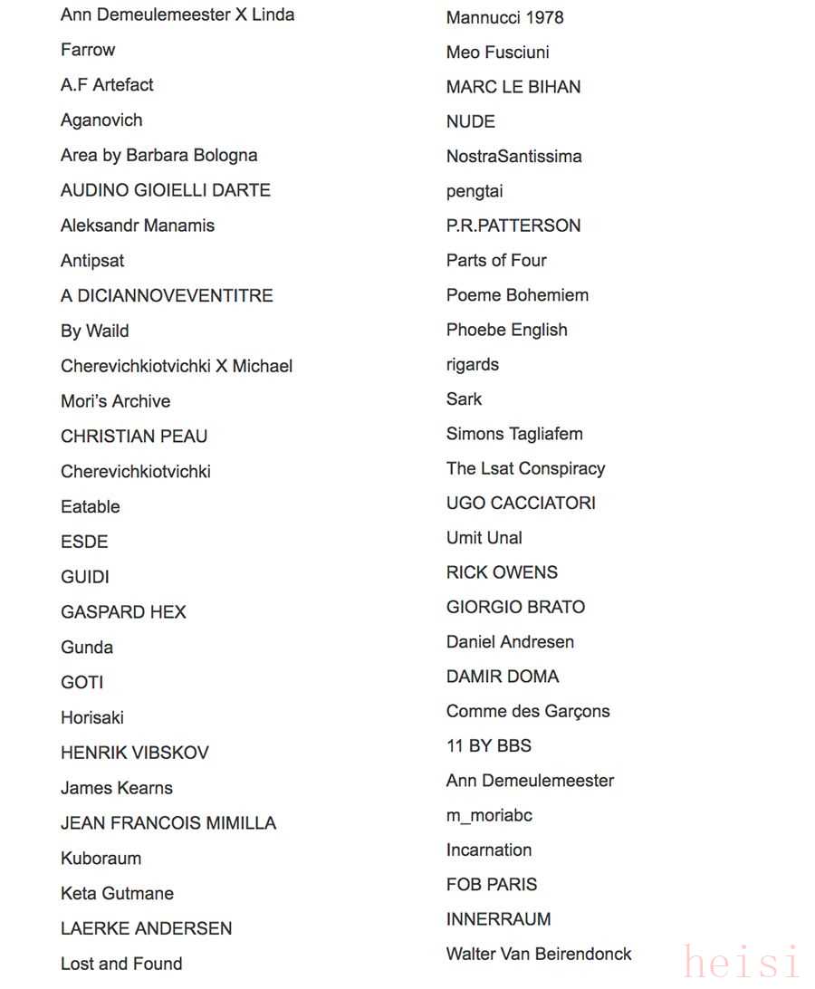 當(dāng)人們還覺得買手這個(gè)職業(yè)還停留在買買買階段的時(shí)候,主理人告訴芭姐,其實(shí)買手屬于商業(yè)化程度很高的藝術(shù)家。除了要了解全世界市面上各式各樣的先鋒品牌,還要了解當(dāng)下的整體環(huán)境和人們到底想要什么。光是看這些陳列在店里的品牌list就覺得開買手店實(shí)在是太復(fù)雜了!