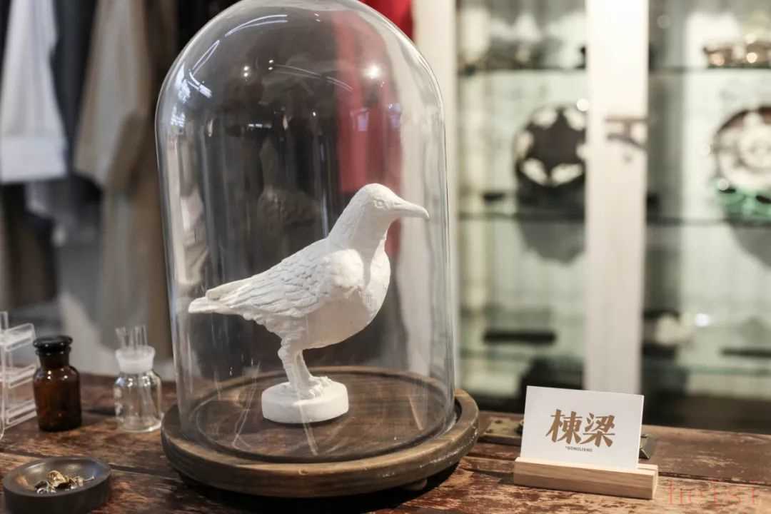 將一方純白瓷磚水池作為展示臺(tái),將洗漱用品與手工藝品穿插擺放在一起,難以分辨是商品還是藝術(shù)品。展示柜里每個(gè)小飾品被仔細(xì)地?cái)[放其中,每一件都是極致精巧,讓人很難不動(dòng)心。