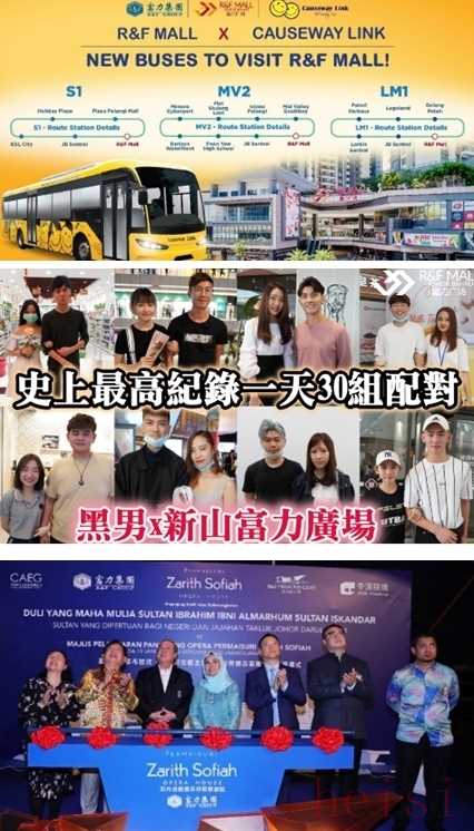 2020年馬來西亞新山廣場與本地公共巴士業(yè)者Causeway Link合作,推出3條新公交路線,將項目與著名景點串聯。另外配合情人節(jié)檔期,項目與臺灣網紅“黑男丘比特”聯動舉行街頭配對活動,該活動臉書直播線上觀看人數最高達2千人,收獲超1千次轉發(fā),相關話題引爆互聯網。馬來西亞富力新天地也在2020年正式投入運營。2020年初,蘇丹后查麗蘇菲雅歌劇院在富力新天地盛大開幕,年底項目更喜迎首個商家——蜀國印象.火鍋開業(yè)。