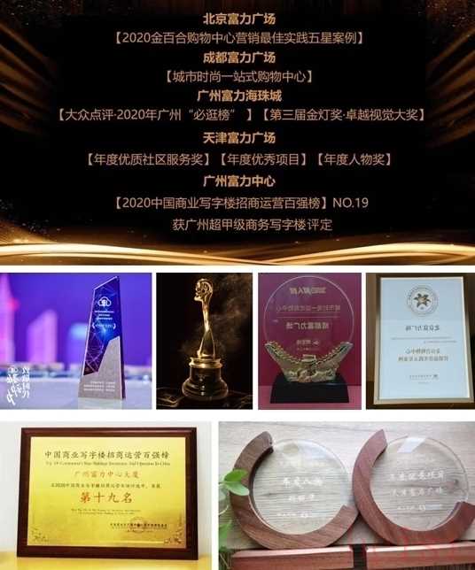 載譽而歸 年末多項大獎喜訊不斷在這個特殊的年份,富力商業(yè)通過智慧和汗水收獲了自己的高光時刻、載譽而歸,在運營能力、管理能力和商業(yè)品牌價值上,獲得了外界的一致認可。