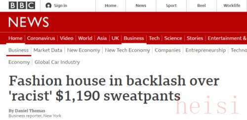 BBC報(bào)道截圖:時(shí)尚品牌因售價(jià)1190美元的“種族主義”運(yùn)動(dòng)褲陷入風(fēng)波