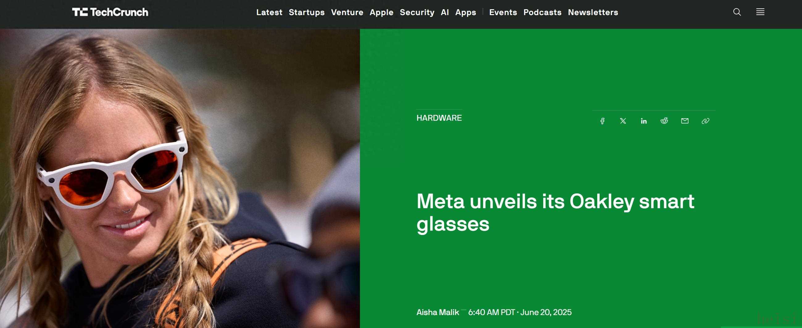 【環(huán)球網(wǎng)科技綜合報(bào)道】6月21日消息,據(jù)外媒報(bào)道,科技巨頭Meta近日宣布與知名運(yùn)動(dòng)眼鏡品牌Oakley達(dá)成合作,將推出搭載人工智能技術(shù)的智能眼鏡產(chǎn)品,這是其在可穿戴技術(shù)領(lǐng)域繼 Ray-Ban Meta 智能眼鏡后的又一重要布局。