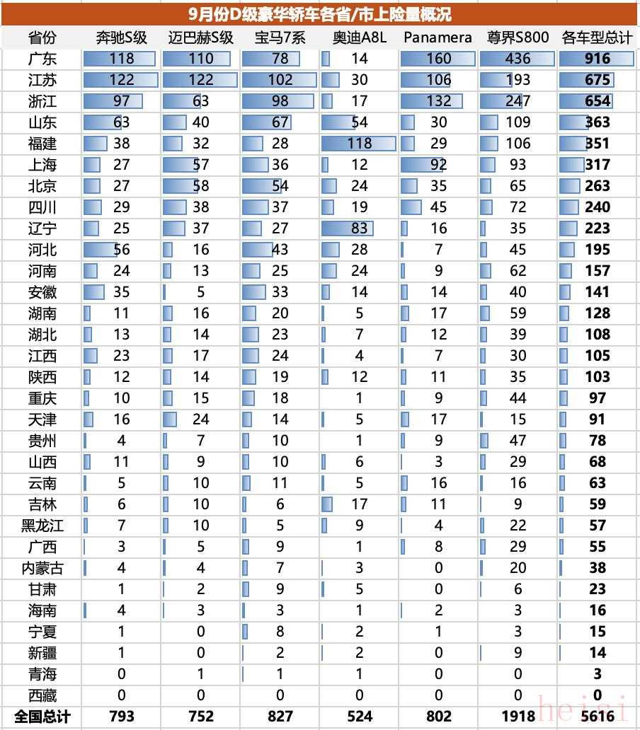 相比之下,奔馳S、邁巴赫S級、寶馬7系的最大區(qū)域市場,都在江蘇,單看廣東省的話,9月份尊界S800一款車的銷量,幾乎相當(dāng)于其它5款競品的總和。