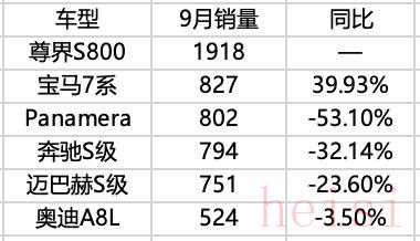 從同比數(shù)據(jù)能看出,除了寶馬7系因去年基數(shù)較低,9月份獲得近四成的同比增長外,其它幾款車型都遭遇了不同程度的下滑,奔馳S級和邁巴赫S級各自下跌了32.1%和23.6%,Panamera更是暴跌了53.1%。