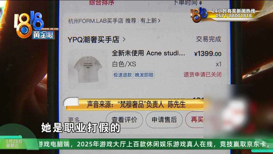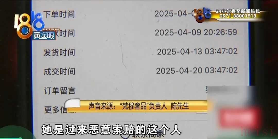 “梵穆奢品”負責人 陳先生:我已經(jīng)跟她協(xié)商了,我說要拿去復檢。這個時候她一直要說是假一賠三??偣彩窃谖覀兌嗉业赇佅铝硕嗌賳危铝?單,總金額有快兩萬塊錢了。每一件衣服她要買兩件。這一家店鋪總共是2798元一個訂單,1399元一個訂單,3999元一個訂單,1998元兩個訂單,七件同一天下單的。她是職業(yè)打假的,這個人我找人查過了她的身份證號,戶籍地址我這邊全都查出來了。還有兩個快遞地址,就是專門用來收快遞的,搞搞這種那個的,還租了一個就是蕭山臨浦的房子,是專門用來做打假的。記者:但那件黑的還沒收到?“梵穆奢品”負責人 陳先生:這個我不大清楚,這個得問我們客服。