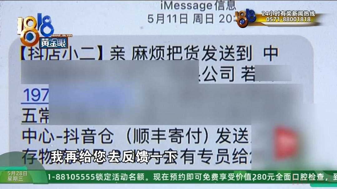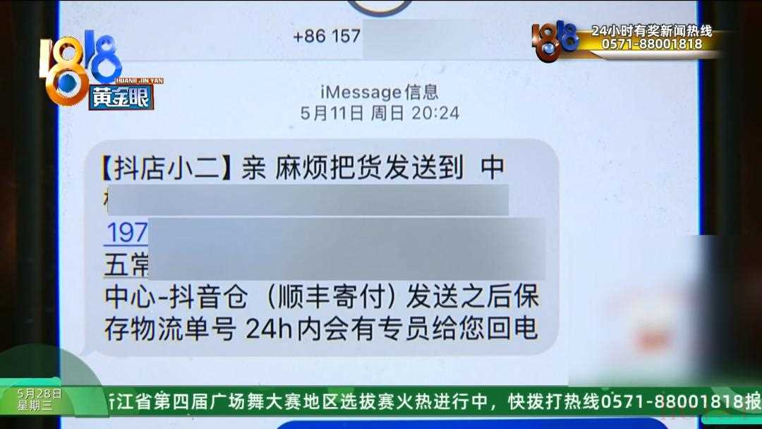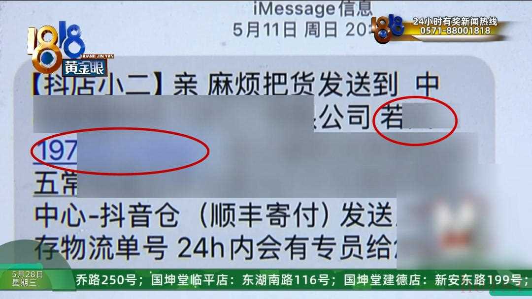 小孔說自稱平臺客服的人給她打電話用的是座機短信是一個手機號發(fā)來的說是“抖店小二”讓她把東西寄到一家公司地址在杭州余杭上面還寫了一個收件人的名字和電話