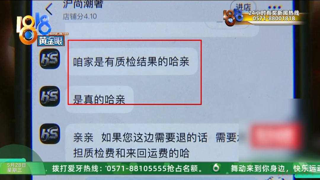記者在平臺上給商家留言后有人回了電話“梵穆奢品”負責人 陳先生:我們是“梵穆奢品”的,“滬尚潮奢”是我們一個合作的商家,我們是作為廣告方幫他們帶貨帶出去的,就算是我們這邊的引進來的顧客,那肯定是我們來去做先行這個處理。她是過來惡意索賠的這個人,她那個檢測報告都是P(后期制作)的,然后貨物它如果是真的,她也是調包過了的,因為我們這個已經(jīng)是送到上海去檢測過再發(fā)送給她的。