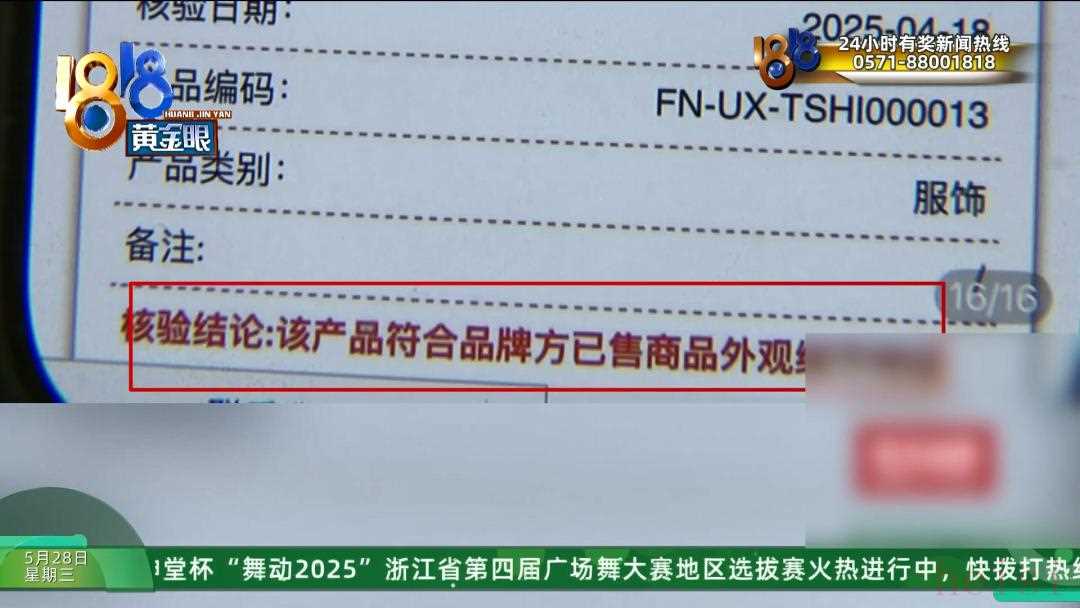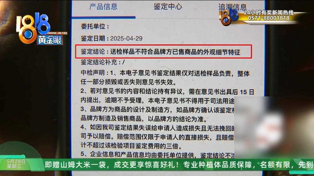 并發(fā)來一家檢測認證中心的核驗結論該產(chǎn)品符合品牌方已售商品外觀細節(jié)特征
