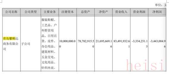 探路者2018年報(bào)顯示,青島馨順達(dá)主要業(yè)務(wù)包括服裝鞋帽、工藝品、戶外野營(yíng)用品、日用百貨等,截至2018年底總資產(chǎn)為7878.29萬(wàn)元,營(yíng)業(yè)收入為8349.19萬(wàn)元,凈利潤(rùn)為虧損344.30萬(wàn)元。