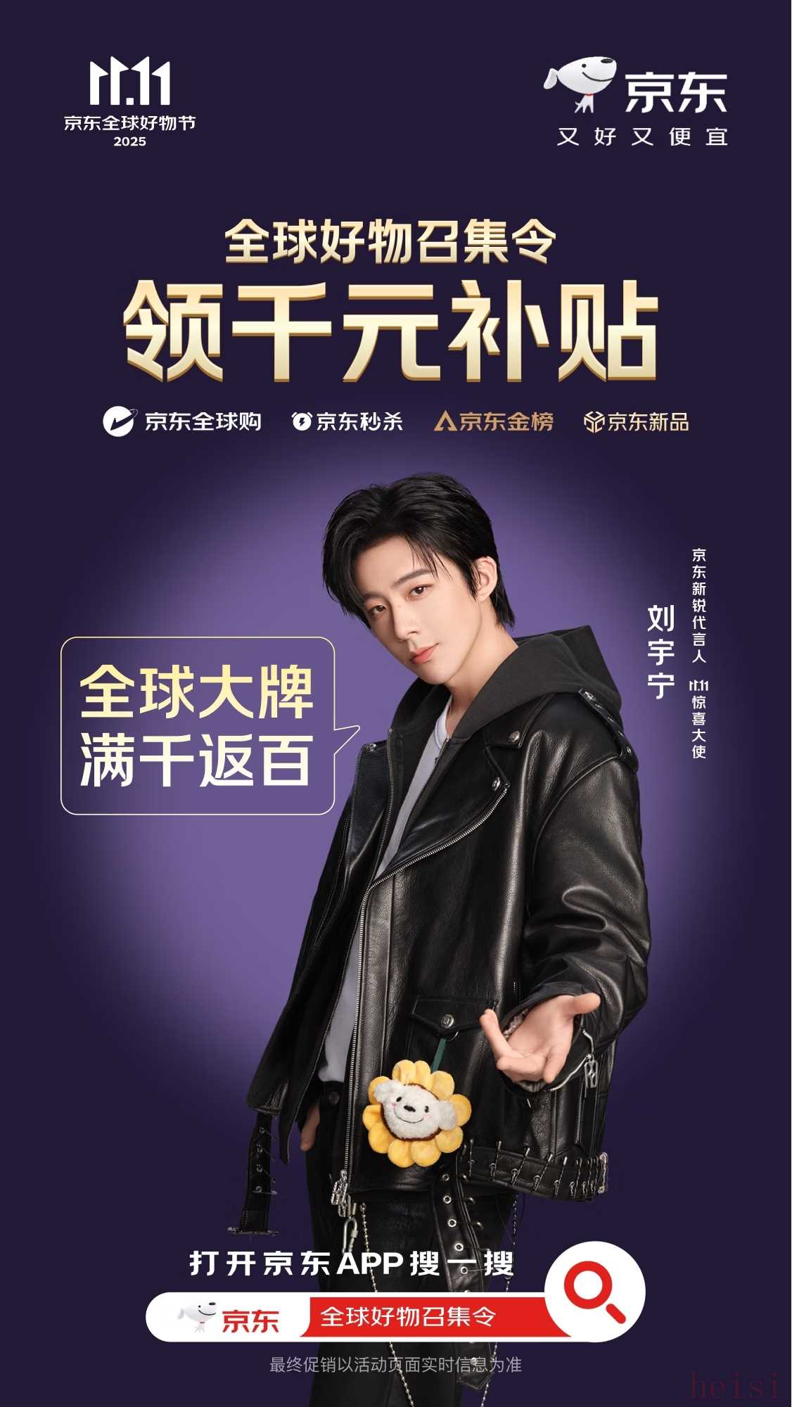 這段話是一個為京東全球購雙十一活動設計的宣傳口號或標題,結合了幾個關鍵元素: