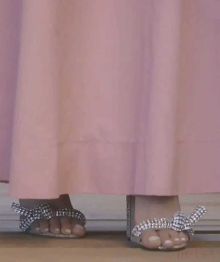 粉色裙子當(dāng)然要搭配少女一些的鞋子,Jimmy Choo的這雙銀色結(jié)繩設(shè)計水鉆款就很合適,精致低調(diào)又很有設(shè)計感。