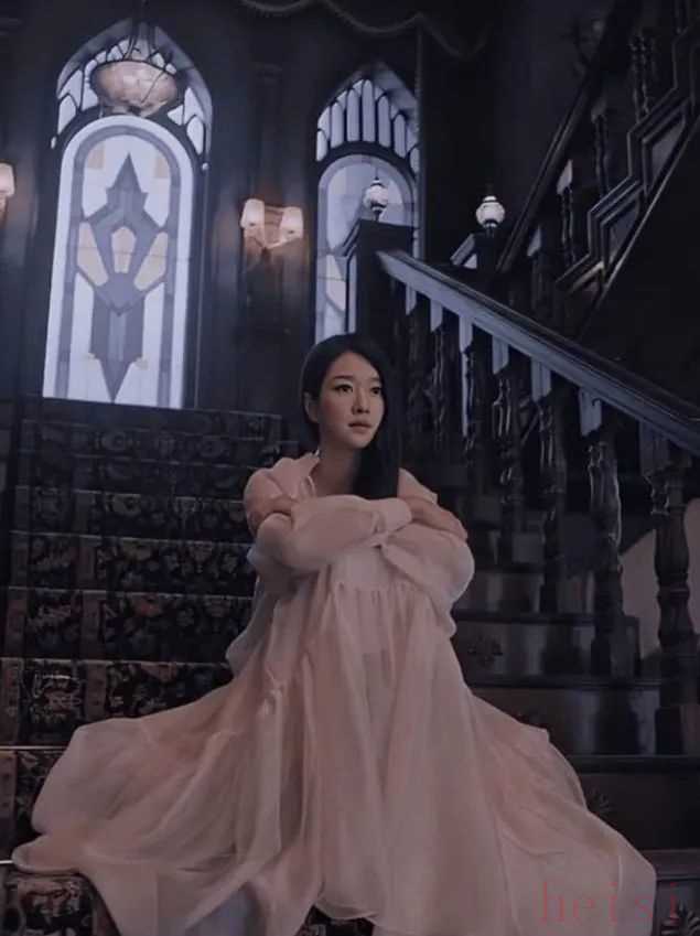 當(dāng)女主穿著白色睡裙款長裙孤獨地坐在城堡樓梯上時,她就像那座緊封大門的被詛咒的城堡一樣,緊緊地將自己關(guān)在了一個誰也無法進(jìn)入的地方,一直孤獨一人。