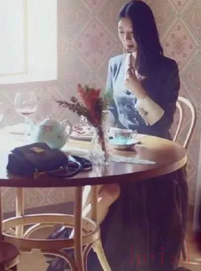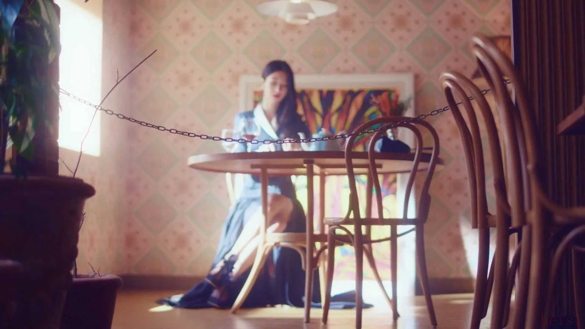 女主剛出場時,穿著黑色西服長裙配上鮮紅的唇色坐在角落里一個人切著一塊血淋淋的牛排,整個氛圍就是活脫脫一個冷酷,無情的魔女形象。