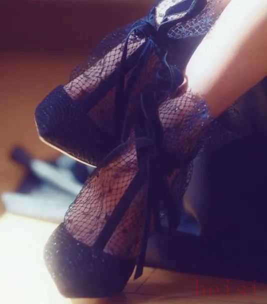 Jimmy Choo的這雙黑色蕾絲系帶高跟鞋是整個造型的點睛之處,鏡頭還給了它一個特寫,仿佛在說從童話中走出的魔女就應(yīng)該穿著這樣一雙鞋。