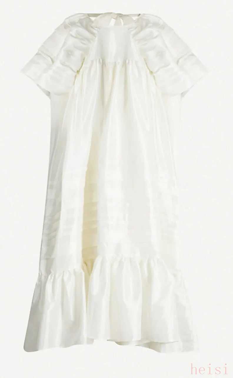 女主穿著丹麥設(shè)計師這件充滿著童話感泡泡袖荷葉邊的長裙,第一次在城堡里展露了笑顏。