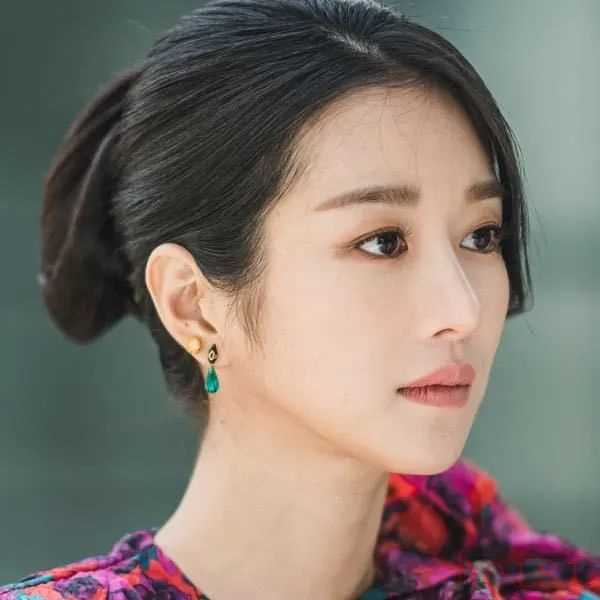 第三集的開場,在詭異的音樂背景之下,女主頂著一頭韓式古典盤發(fā),身穿深紫色裙裝出場。