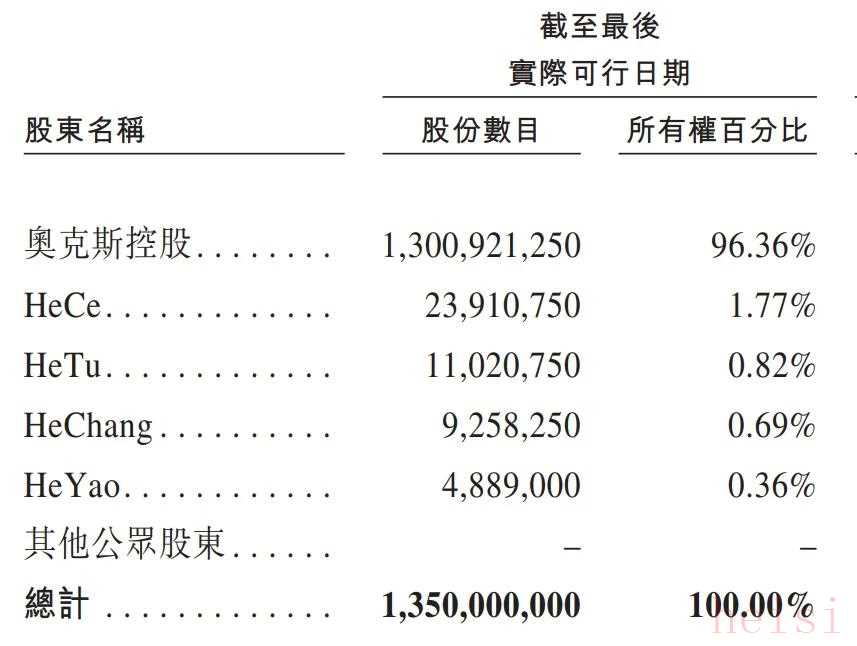 鄭堅(jiān)江通過(guò)Ze Hui、China Prosper及奧克斯控股控制奧克斯約96.36%投票權(quán)。