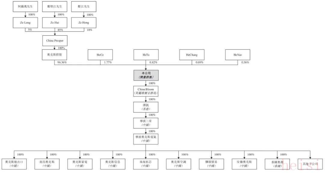 鄭堅(jiān)江,63歲,為公司的創(chuàng)始人、董事會(huì)主席、執(zhí)行董事及控股股東之一。鄭堅(jiān)江自2024年10月起擔(dān)任董事會(huì)主席兼董事,并于2025年1月調(diào)任為執(zhí)行董事。鄭堅(jiān)江主要負(fù)責(zé)監(jiān)督集團(tuán)的整體管理及業(yè)務(wù)運(yùn)營(yíng)、董事會(huì)事務(wù)、制定戰(zhàn)略及營(yíng)運(yùn)計(jì)劃以及作出重大業(yè)務(wù)決策。鄭堅(jiān)江目前于集團(tuán)多家子公司擔(dān)任董事及管理職位。鄭江,58歲,自2024年10月起擔(dān)任董事,并于2025年1月調(diào)任為非執(zhí)行董事。鄭先生于2003年6月至2013年6月?lián)螌幉▕W克斯電氣董事,并自2015年7月起再次擔(dān)任該職務(wù)。其主要負(fù)責(zé)監(jiān)督董事會(huì)事務(wù)并就集團(tuán)業(yè)務(wù)運(yùn)營(yíng)提供戰(zhàn)略建議和指導(dǎo)。鄭江擁有近30年企業(yè)管理經(jīng)驗(yàn)。其分別自2015年5月起及2020年7月起擔(dān)任奧克斯國(guó)際執(zhí)行董事及董事會(huì)主席。其現(xiàn)為奧克斯集團(tuán)董事兼副董事長(zhǎng)。彼亦于奧克斯集團(tuán)若干子公司擔(dān)任董事及管理職位。自2008年3月起,其一直擔(dān)任三星醫(yī)療董事及副董事長(zhǎng),直至2014年5月其輪值離任。何錫萬(wàn),68歲,為非執(zhí)行董事。何錫萬(wàn)自2024年10月起擔(dān)任董事,并于2025年1月調(diào)任為非執(zhí)行董事。于2003年6月至2014年9月,何錫萬(wàn)擔(dān)任寧波奧勝董事長(zhǎng)兼總裁。何錫萬(wàn)亦自2013年6月起歷任寧波奧克斯電氣的董事。其主要負(fù)責(zé)監(jiān)督董事會(huì)事務(wù)并就本集團(tuán)業(yè)務(wù)運(yùn)營(yíng)提供戰(zhàn)略建議和指導(dǎo)。何錫萬(wàn)自1996年1月起歷任寧波三星集團(tuán)股份有限公司的董事、董事長(zhǎng)及總經(jīng)理。自2001年6月起,何錫萬(wàn)曾在奧克斯集團(tuán)擔(dān)任多項(xiàng)職務(wù),包括董事、董事長(zhǎng)及總裁,其現(xiàn)任職務(wù)為董事。其亦于奧克斯集團(tuán)若干子公司擔(dān)任董事及管理職位。此外,寧波合策、寧波合途、寧波合暢及寧波合耀各自的普通 合伙人有權(quán)通過(guò)各境外持股平臺(tái)于英屬維爾京群島注冊(cè)成立的全資投資控股公司(即 HeCe、HeTu、 HeChang、HeYao)行使公司股份所附投票權(quán)。 IPO前,境外持股平臺(tái)通過(guò)其各自的英屬維爾京群島全資投資控 股公司間接持有合共49,078,750股股份,約占已發(fā)行股份總數(shù)的3.64%。與格力“空調(diào)大戰(zhàn)”恩怨多年雖然奧克斯與老對(duì)手格力電器體量存在巨大差距,但彼此“空調(diào)大戰(zhàn)”恩怨由來(lái)已久。2019年6月,格力電器發(fā)布《關(guān)于奧克斯空調(diào)股份有限公司生產(chǎn)銷(xiāo)售不合格空調(diào)產(chǎn)品的舉報(bào)信》,指出奧克斯部分空調(diào)與其宣傳、標(biāo)稱(chēng)的能效值差距較大,經(jīng)第三方機(jī)構(gòu)檢測(cè),能效比和制冷消耗功率的檢測(cè)結(jié)論不合格。奧克斯則回應(yīng)稱(chēng)屬于明顯的不正當(dāng)競(jìng)爭(zhēng)行為,對(duì)格力的不實(shí)舉報(bào)已向公安機(jī)關(guān)報(bào)案,并將向司法機(jī)關(guān)提起訴訟。2023年7月,廣州知識(shí)產(chǎn)權(quán)法院刊登珠海格力電器起訴奧克斯空調(diào)、寧波奧勝貿(mào)易有限公司等的裁判文書(shū)。公告內(nèi)容顯示,原告格力電器訴求七被告立即停止侵犯原告商業(yè)秘密,永久刪除載有原告商業(yè)秘密的電子數(shù)據(jù),及空調(diào)器產(chǎn)品、模具、技術(shù)圖紙等,并且索賠9900萬(wàn)元。