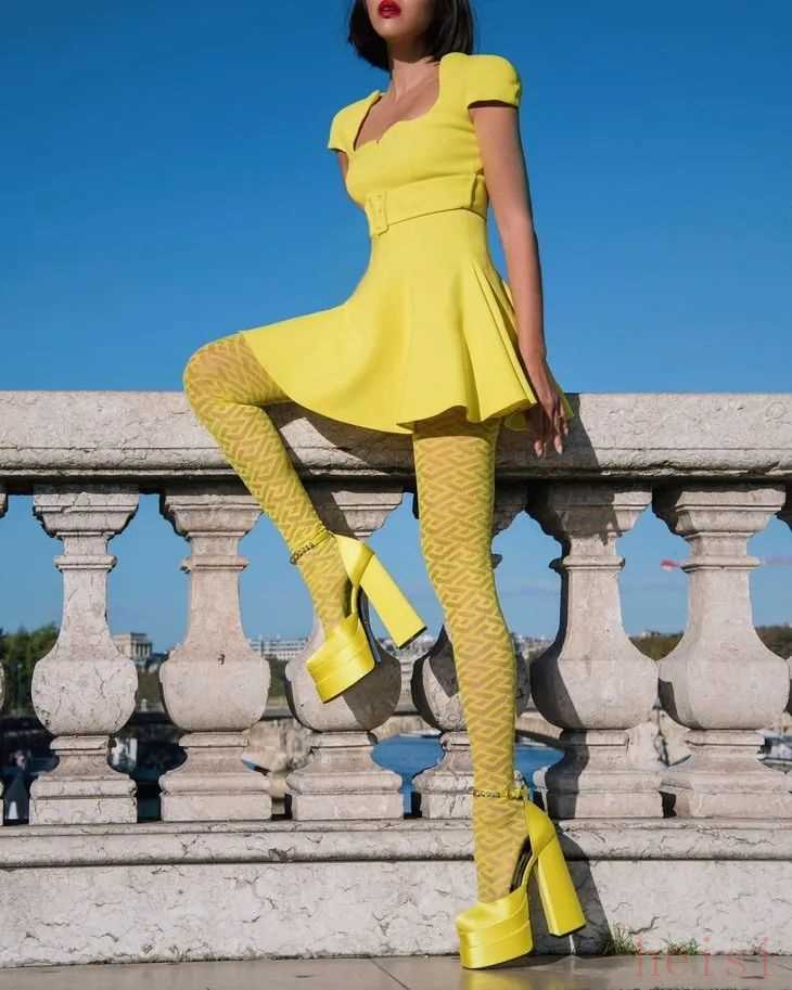 本就是千禧年流行起來的鞋款和Y2K辣妹風更是合拍,配上露膚、彩色的裙裝,恰到好處的性感,辣得你斯哈斯哈~