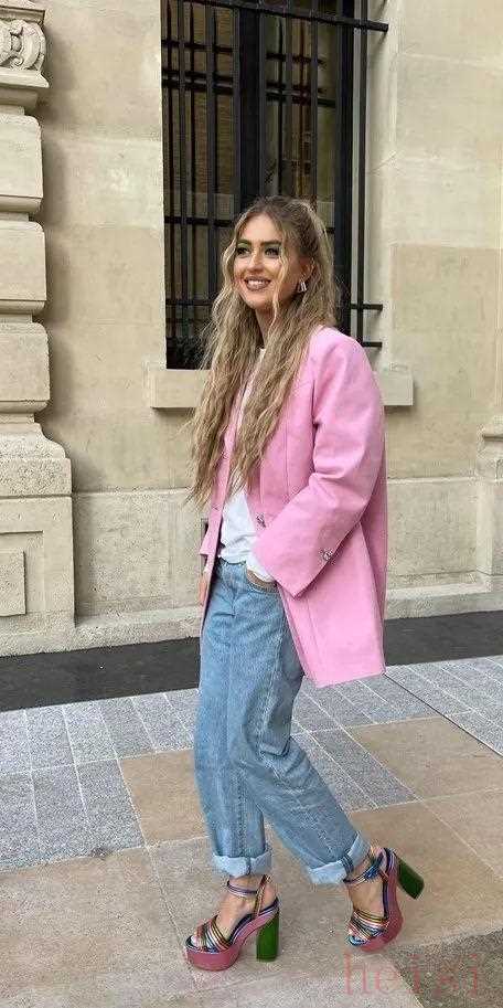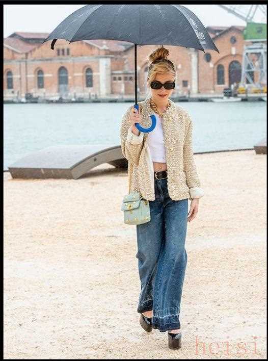除此之外,當時呼吁女性解放身體,褲裝也逐漸流行,特別是高腰闊腿褲。所以,闊腿褲和防水臺高跟鞋搭配在一起也能別有一番復古感。