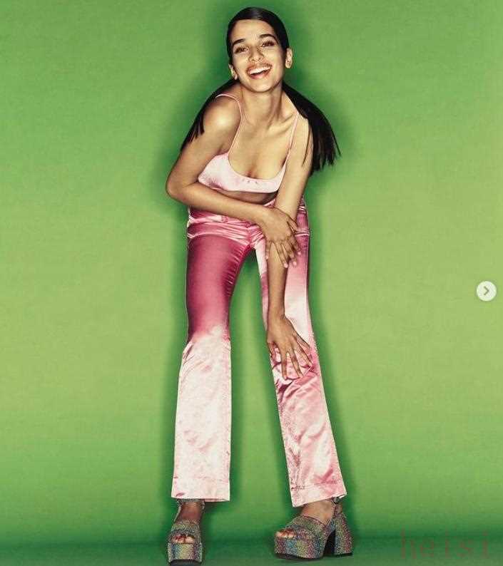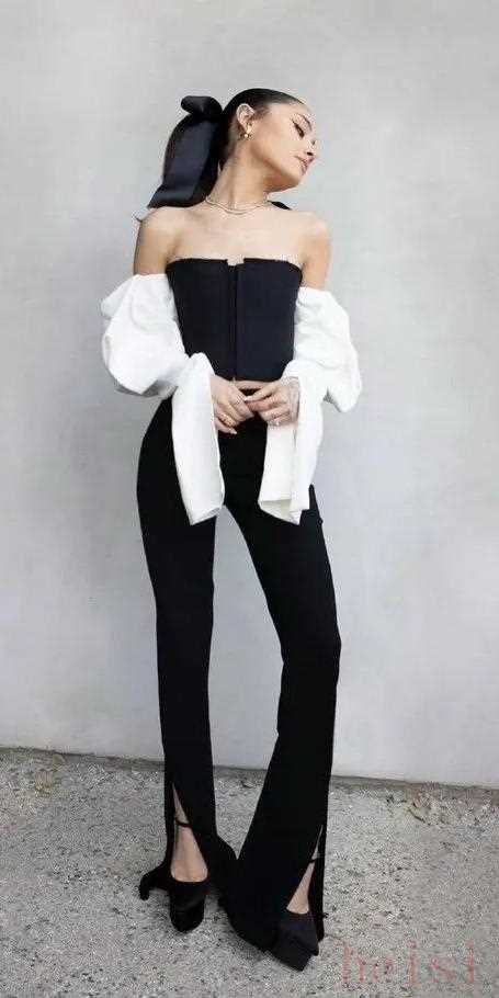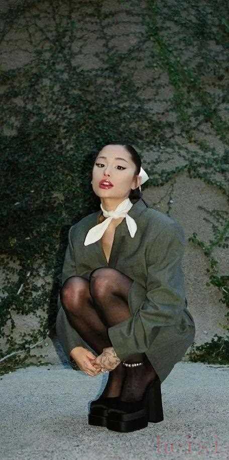 身高1米53的Ariana,自從去年愛上了亞裔妝造后就離不開“驢蹄”鞋,搭配上短裙、闊腿褲、下身失蹤的造型,一雙細細的腿在防水臺的加持下更修長,比例都變成了超模同款!