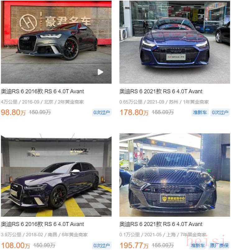 至于定位更高的RS 6,國(guó)內(nèi)其實(shí)引入過(guò)兩代車型。其中,2020年及以前的上代產(chǎn)品,當(dāng)時(shí)新車含稅價(jià)150萬(wàn)左右,目前二手行情普遍在100萬(wàn)左右;而2021年上市的新一代RS 6,因?yàn)槟壳坝嗆囈劝肽暌陨?,所以行情高的嚇人?年車齡的準(zhǔn)新RS 6,依然可以賣到接近200萬(wàn),比新車155萬(wàn)的指導(dǎo)價(jià)還貴了不少。