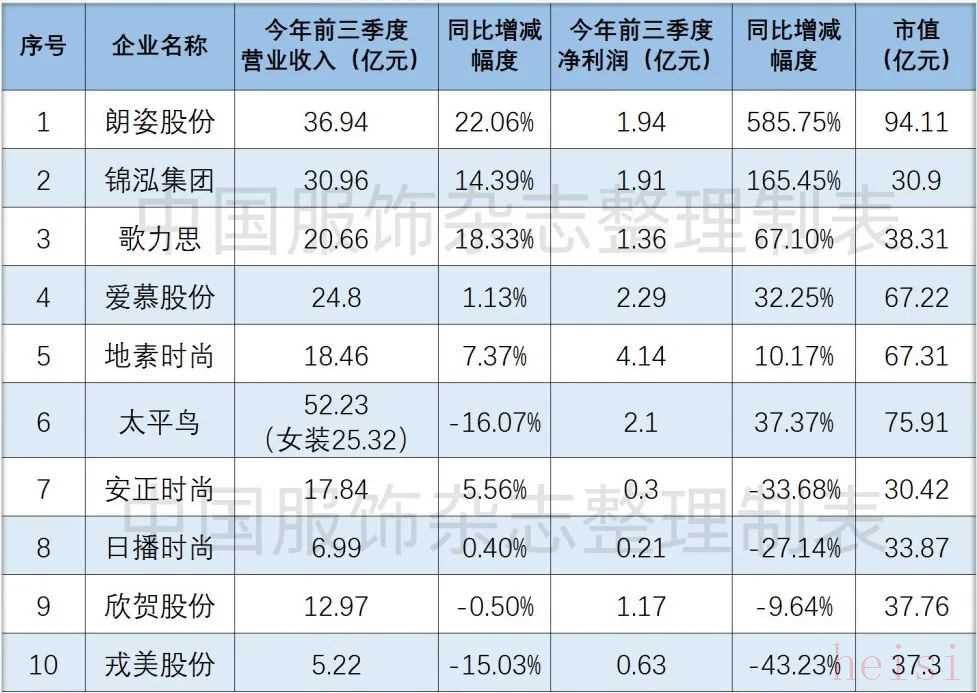 我們來數(shù)說一下2023年前三季度(截至2023年9月30日)A股上市公司中10家女裝公司的業(yè)績表現(xiàn),并嘗試分析哪家表現(xiàn)相對“強(qiáng)勁”。