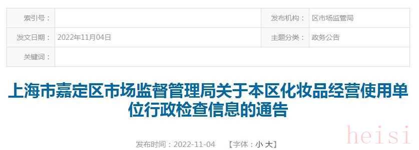 上海市嘉定區(qū)市場監(jiān)督管理局關(guān)于本區(qū)化妝品經(jīng)營使用單位行政檢查信息的通告