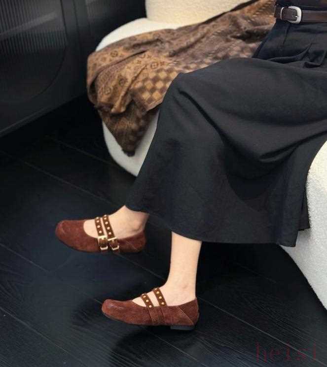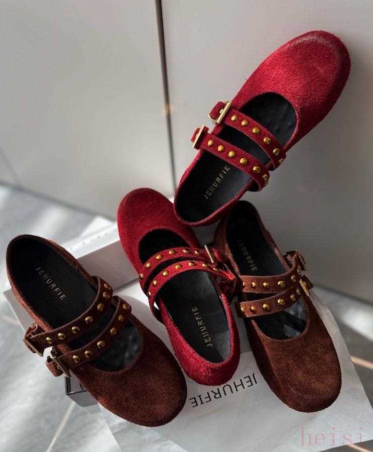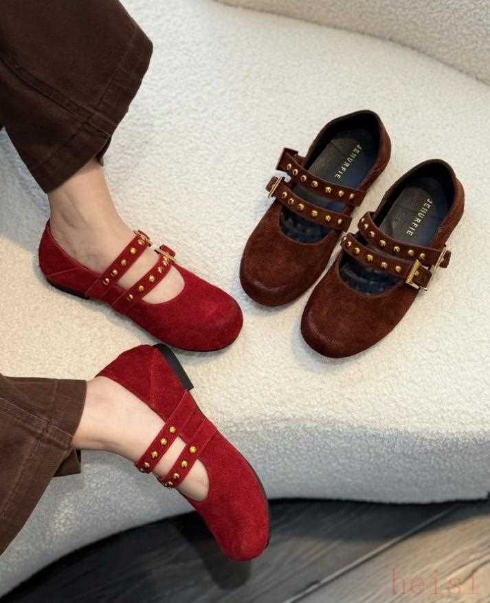 經(jīng)典瑪麗珍鞋型加上鉚釘裝飾,復(fù)古中帶點(diǎn)精致,既淑女又有個(gè)性。不管是搭配裙子還是牛仔褲,都能穿出不一樣的氛圍感。