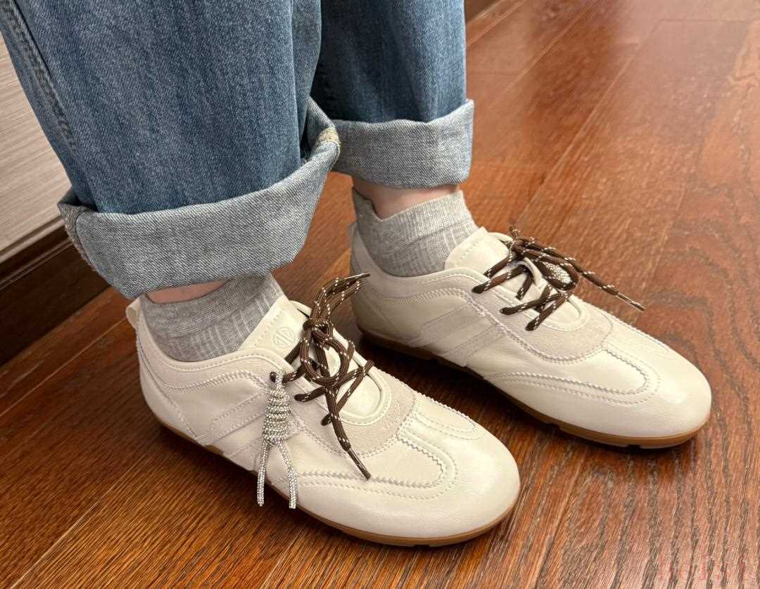 圖中她上腳的,就是今年主推的新款羊皮德訓(xùn)鞋(貨號(hào)AB25361)。