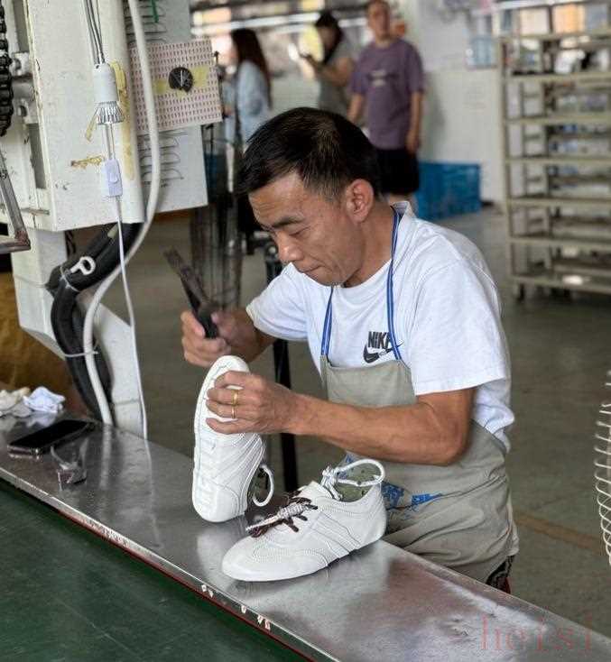 奧步鞋廠占地4000平方米,員工有幾百人,為多個(gè)大牌代工。“我們一般都是為一些大牌子代工,用料用習(xí)慣了,都喜歡用好的真皮,甚至連運(yùn)動(dòng)鞋,我都想用好皮子?!苯啻赫f(shuō)。