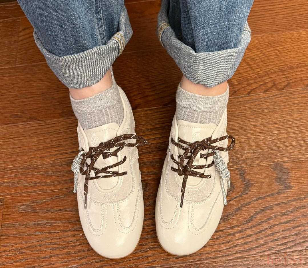 鞋帶上的銀色小裝飾是點(diǎn)睛之筆,簡(jiǎn)約又不失細(xì)節(jié)。